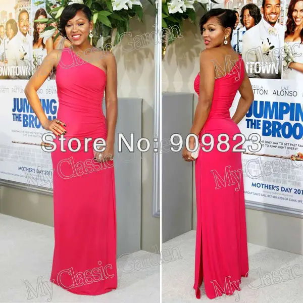 Отзывы о Мэган гуд одно плечо оборками Fuschia высокая щелевая полная длина красной ковровой