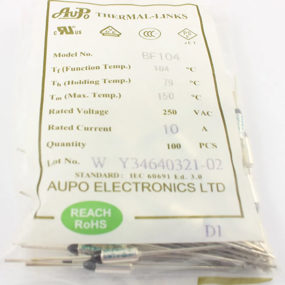10 шт. AUPO тепловой предохранитель среза TF гранулы TCO 104 градусов 250 В 10A BF104
