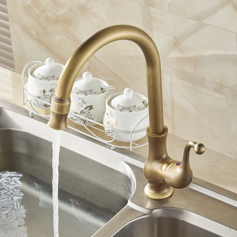 Кухонный кран из латуни с античным оттенком и одной поворотной ручкой - купить