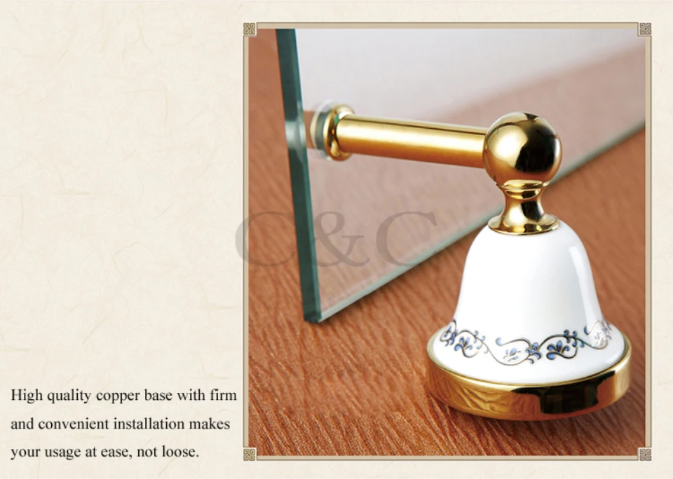 Отзывы о Однослойный держатель для ванной комнаты из твердой латуни и стекла с золотым