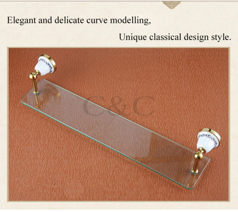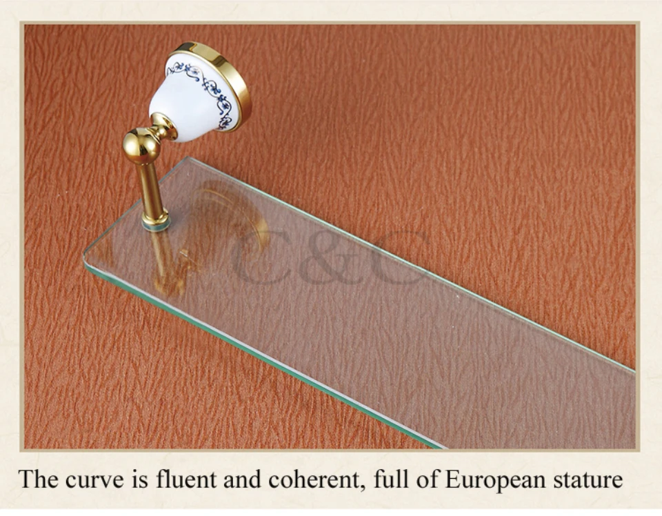 Купить Однослойный держатель для ванной комнаты из твердой латуни и стекла с золотым