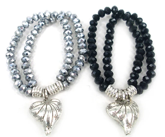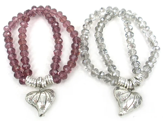 Отзывы о Новый прибытие Бесплатная доставка 8 мм фасетированные хрустальные стеклянные бусины с подвеской сердца и цветка на двойном ряду браслет для дам