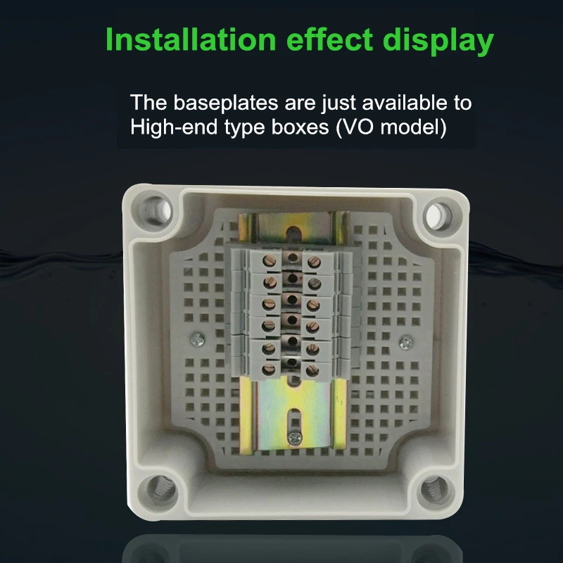 Описание продукта: Изготовлен из высококачественного пластика, отличные характеристики, без коррозии, антистатик, изоляция, водонепроницаемый, влагостойкий, в основном подходит для литой стали внутри и снаружи помещений, нефтехимии, электроники, электроники, железной дороги, строительная площадка, горнодобывающая промышленность, карьер, аэропорт, гостиница, корабли, Крупные фабрики, прибрежные фабрики, терминальное оборудование, Очистка сточных вод, экологические риски и т. Д. Особенности: ● Продукт весит приблизительно 1/4 вес железной коробки и может быть легко установлен или перемещен, продукт не подвержен коррозии, имеет превосходную изоляцию. ● Изделие прошло Водонепроницаемость и Пыленепроницаемость в соответствии с жесткими стандартами качества. (IP66) ● Использование также удобно для установки замещающей направляющей клеммы, кнопочной коробки, небольшой клеммы, сигнала, реле и датчика, связи и распределительной коробки и т. д. Упаковка: 1 пакет