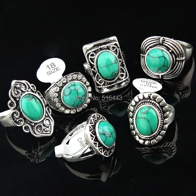 Винтажные 5 шт. оптовая продажа ювелирных изделий Много бирюзовых камней античное посеребрение женские мужские кольца A-1459,99 долларов США/ЛотШтук/партия |
