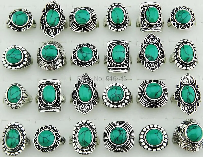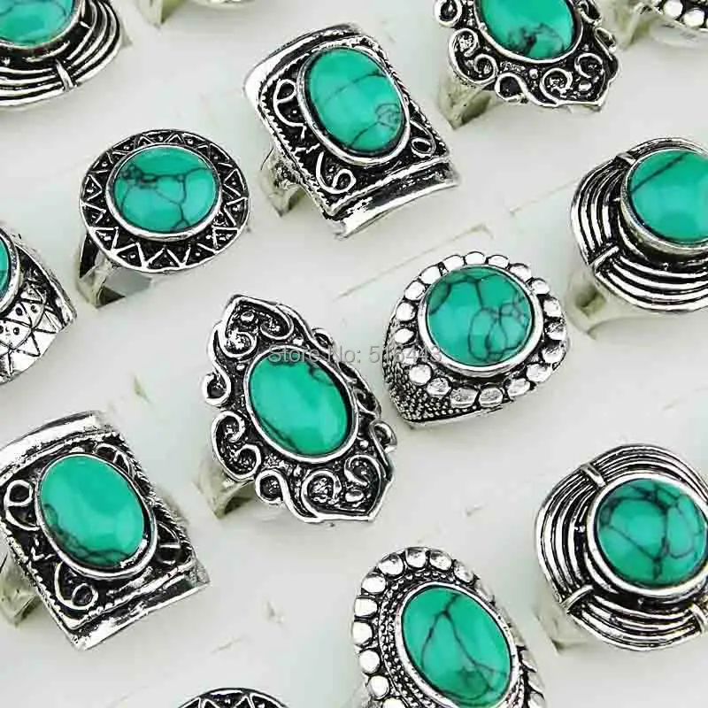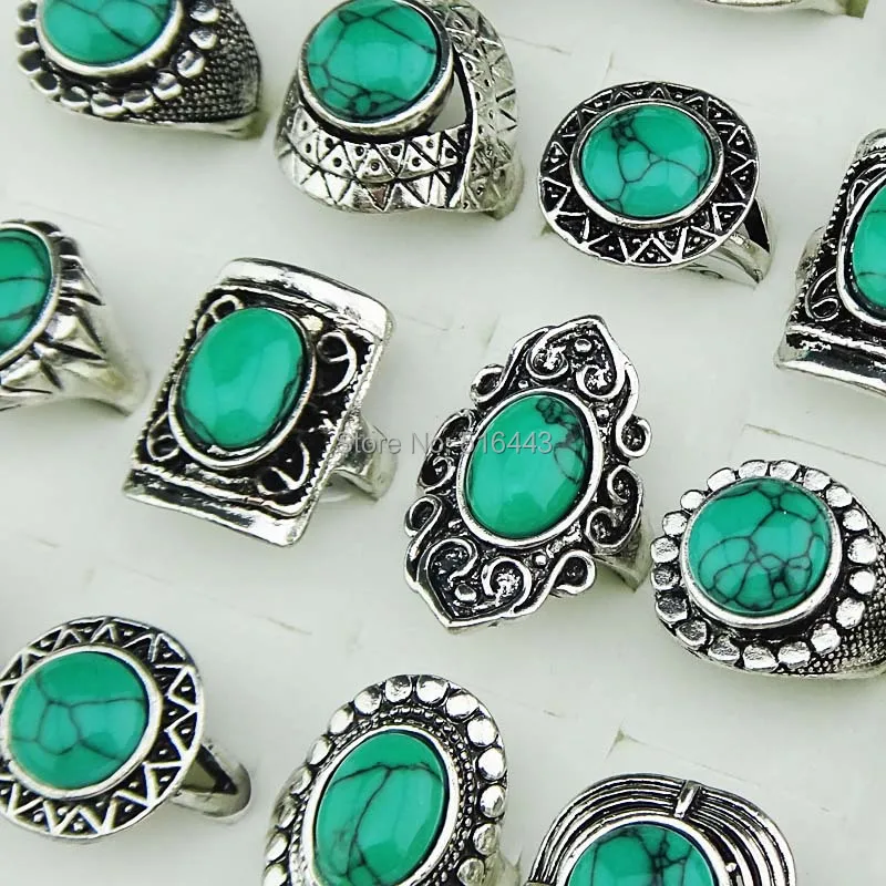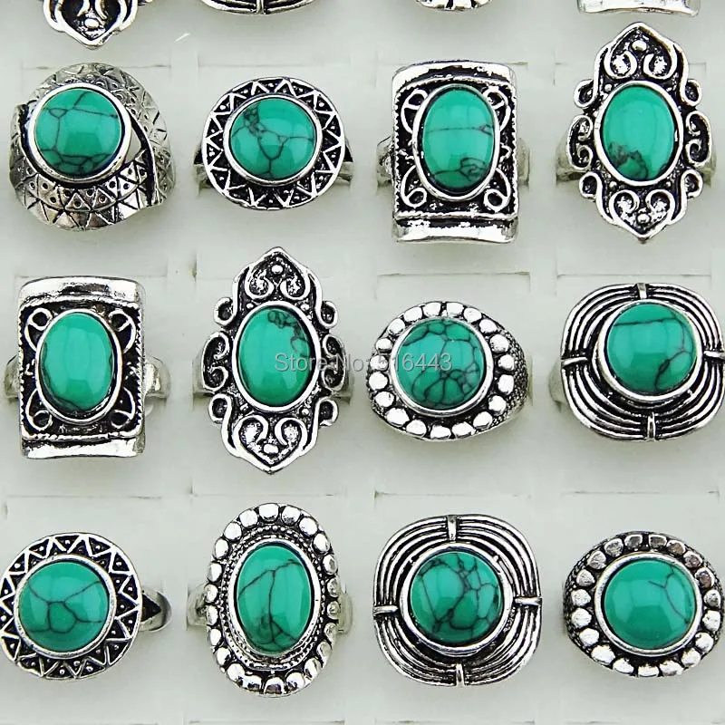 Новое поступление, 30 шт., оптовая продажа, винтажные ювелирные изделия, бирюзовые камни, античное серебряное покрытие, женские и мужские кольца A-14541,41 долларов США/ЛотШтук/партия |