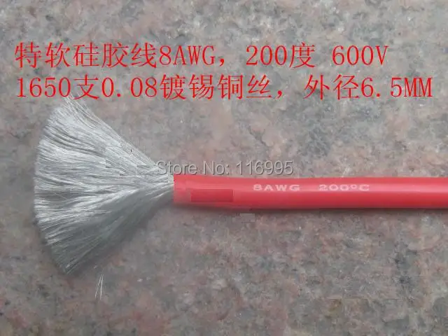 Бесплатная доставка 1 метр 8AWG красный/UL специальный мягкий силиконовый провод/1650 акций/высокотемпературный провод/1650 супер мягкий сердечник