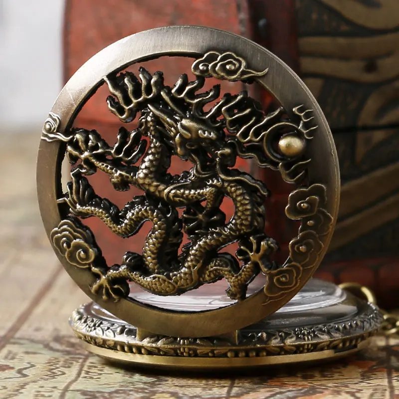 Винтажные карманные часы в китайском стиле с драконом кварцевые цепочка - купить