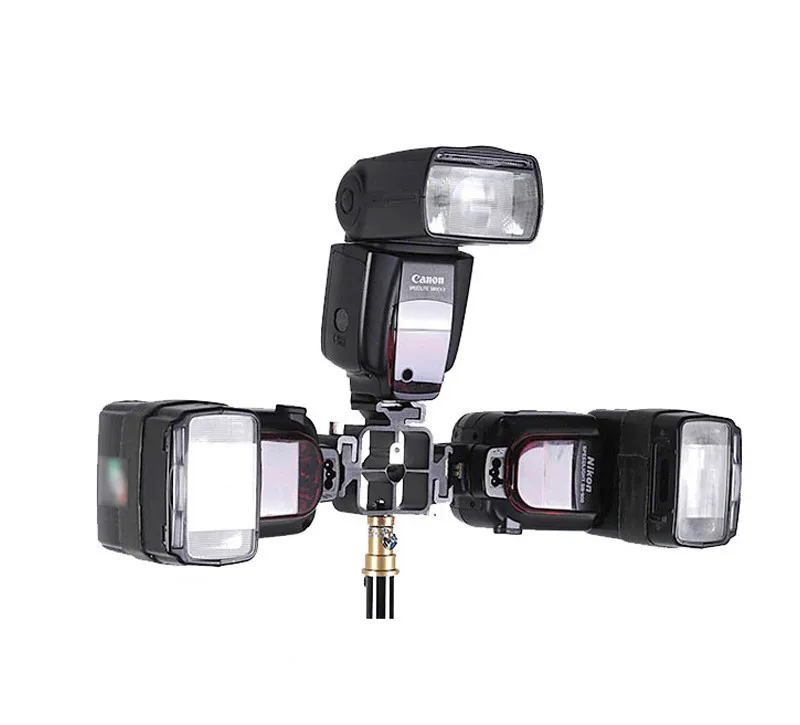 Цельнометаллический 3 в 1 тройное Крепление-адаптер для горячего башмака для вспышки Держатель вспышки кронштейн светильник подставка Черный