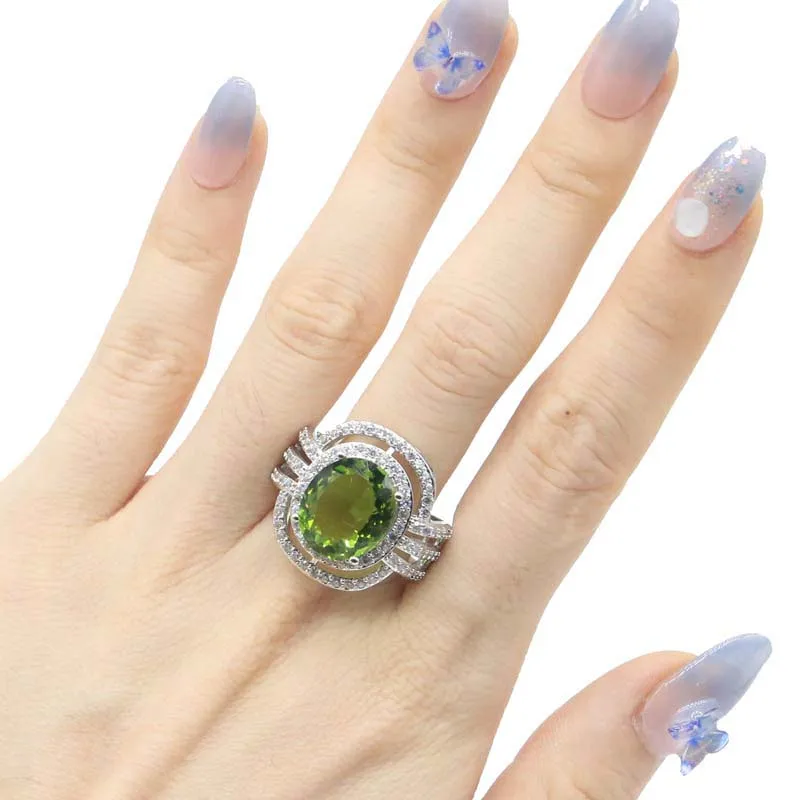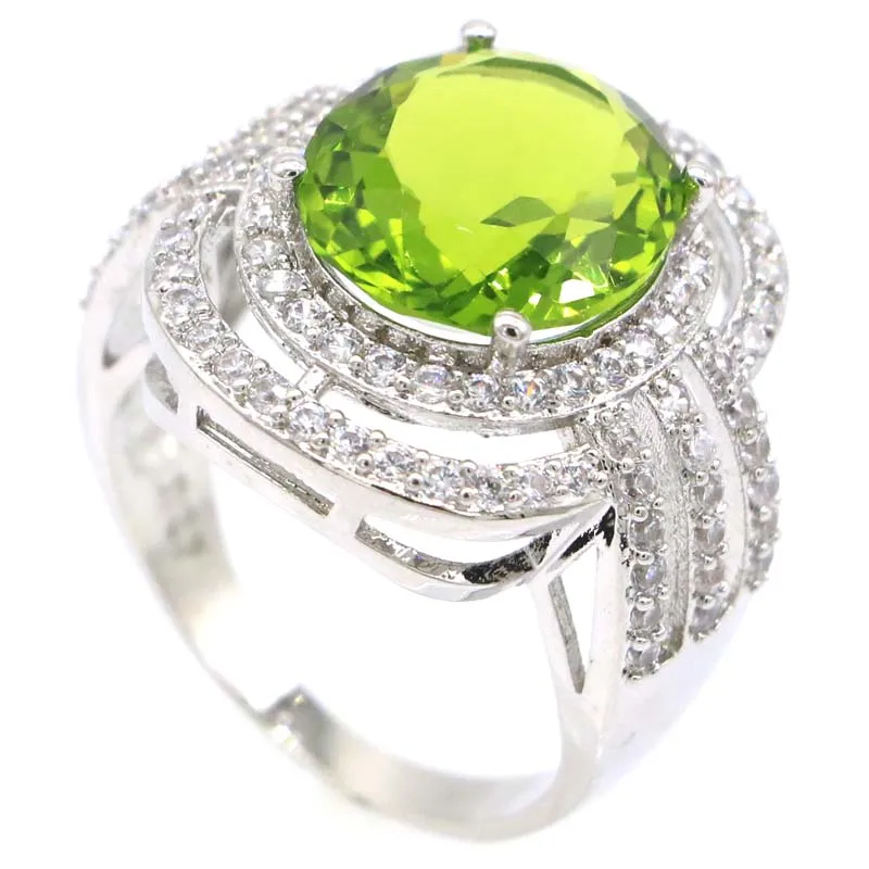Отзывы о Женские серебряные кольца SheCrown 7 г с зеленым Перидотом лондонским голубым