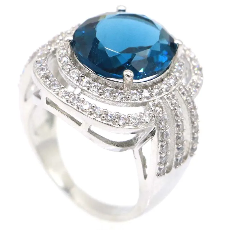 Женские серебряные кольца SheCrown 7 г с зеленым Перидотом лондонским голубым - купить