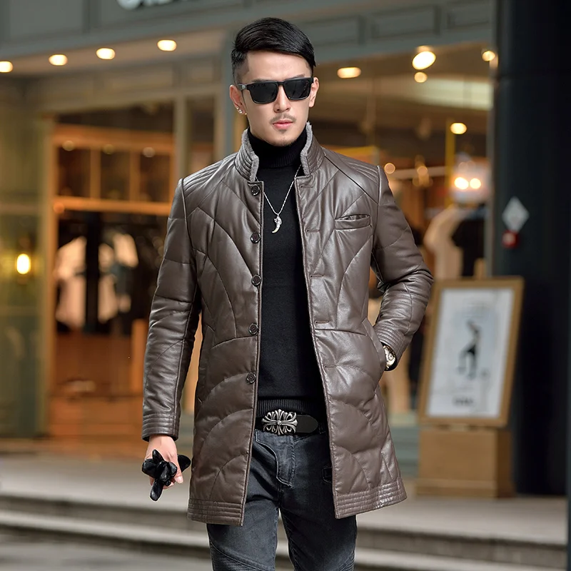Отзывы о Batmo 2021 мужское модное зимнее кожаное пальто Тренч одежда длинное мужская Размер M