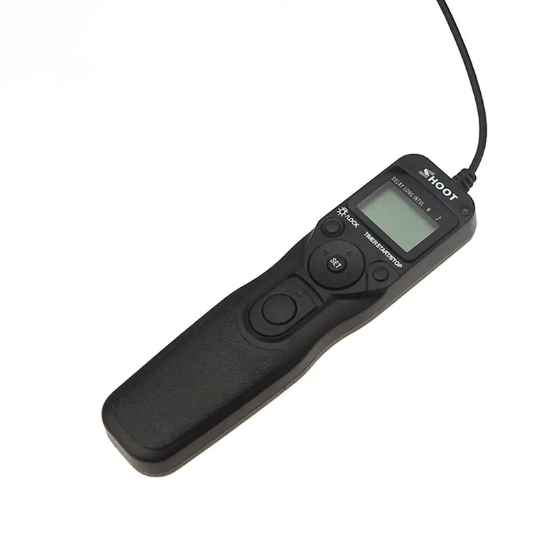 The timer can be set anywhere from 1 second to 99 hours, 59 minutes, 59 seconds. The buttons can be operated with a single thumb. The LCD panel can also be illuminated. The remote has a stylish and ergonomic design, making it a pleasure to use. It has a super large LCD screen. The shutter release button on the remote is a two-stage button: half-pressing the button will cause the camera to focus, and full-pressing will trigger the camera's shutter.