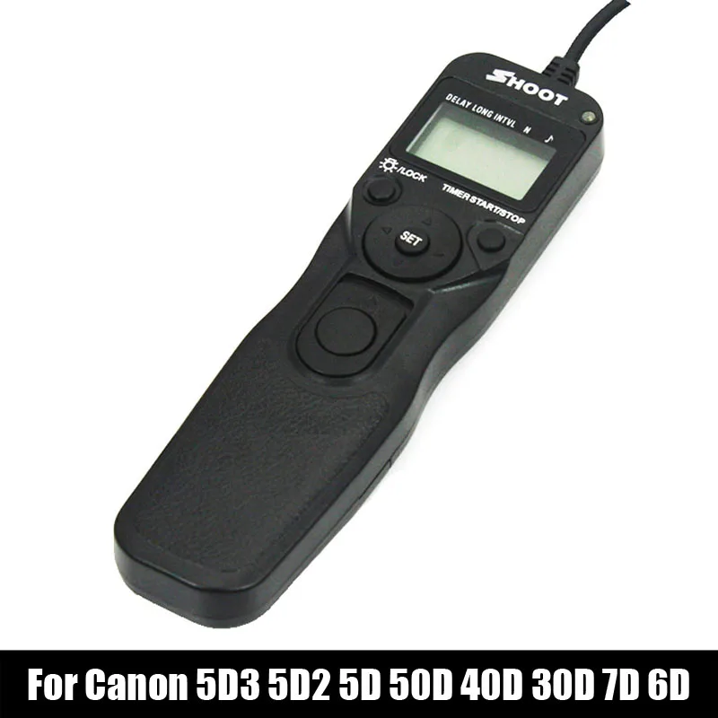 This digital timer remote is designed to trigger a camera shutter with regular time intervals, featuring self-timer, interval timer, long-exposure timer, and exposure-count settings.