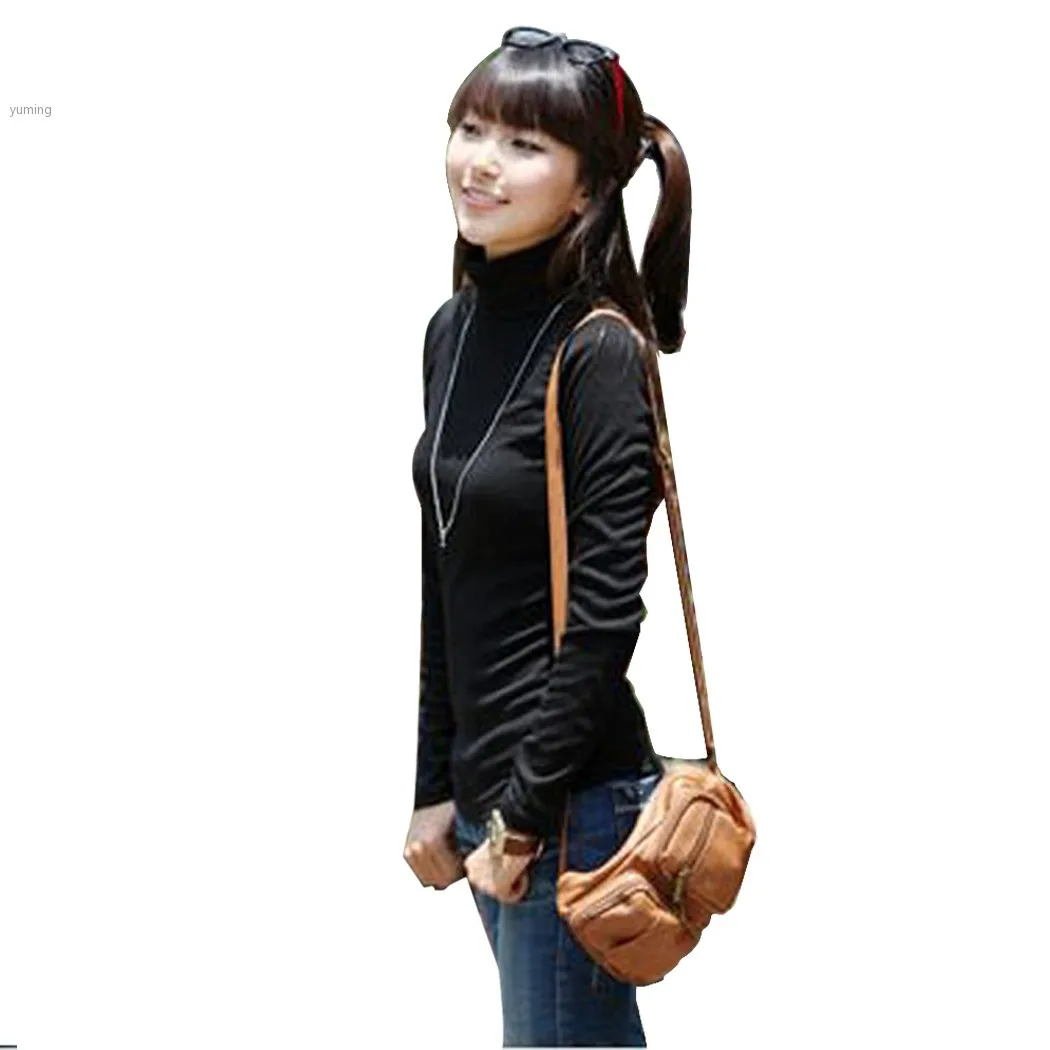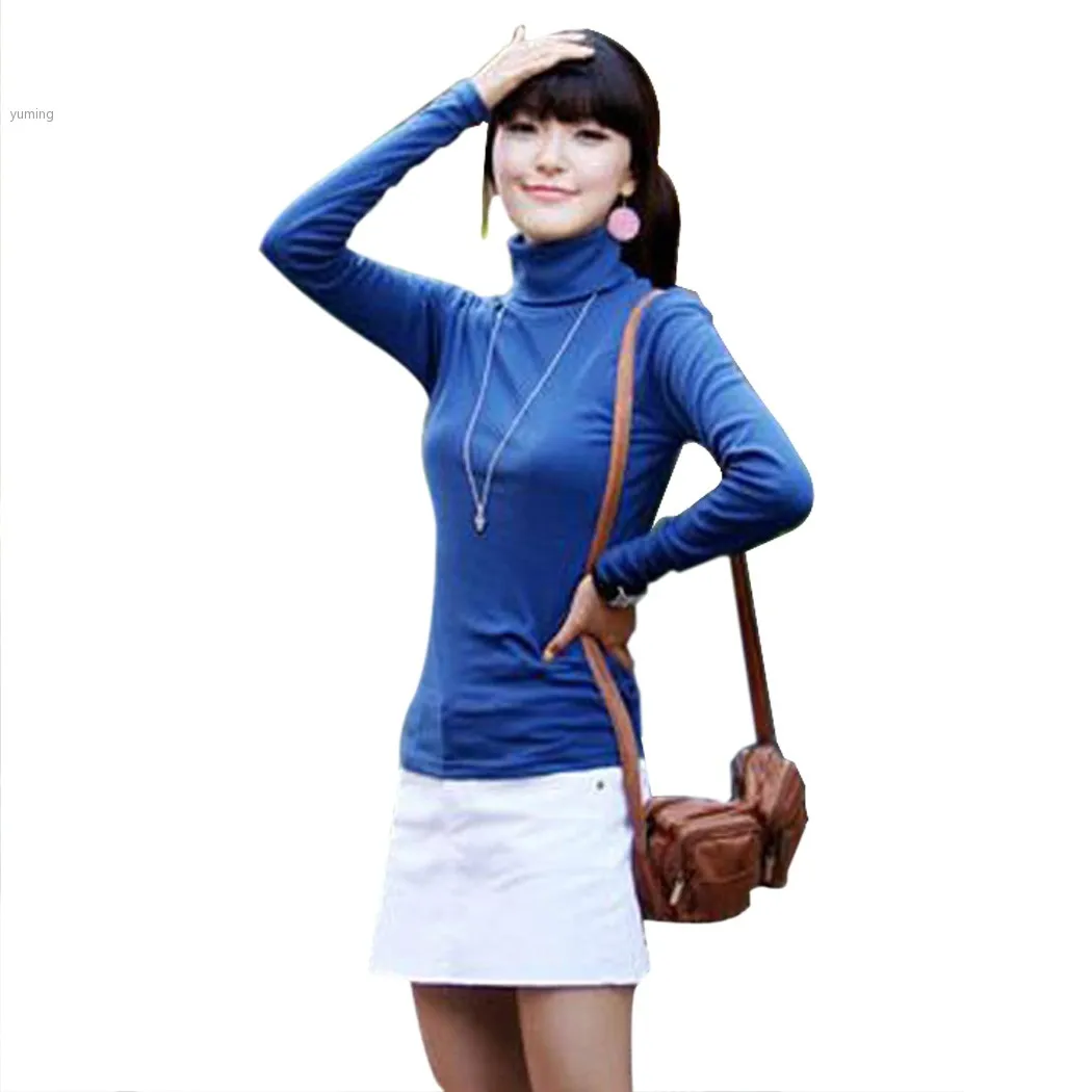 Новый 2014 женщин водолазку пуловер с длинными рукавами основной рубашка сплошной - купить