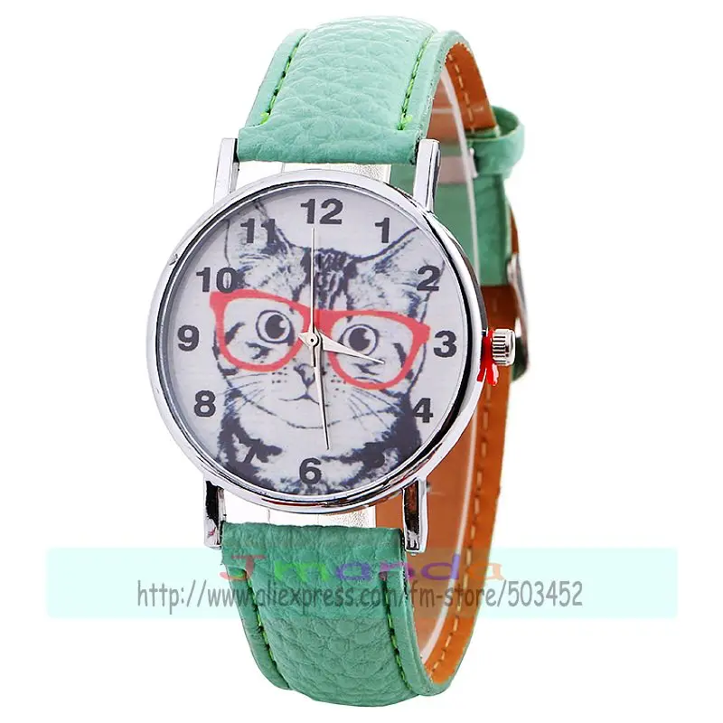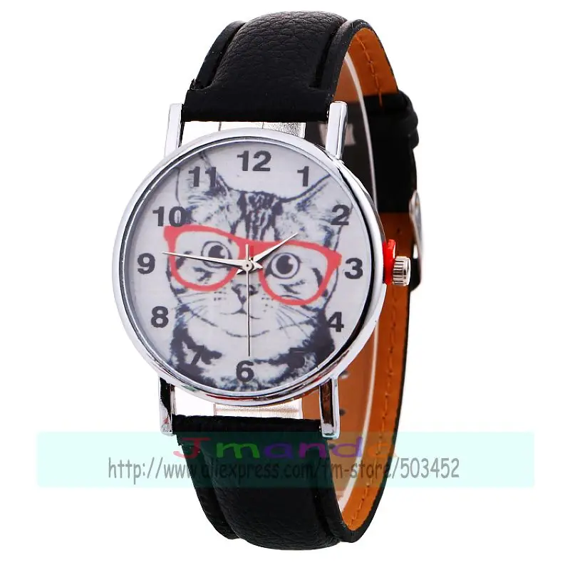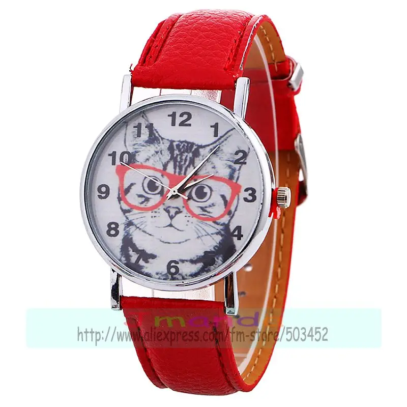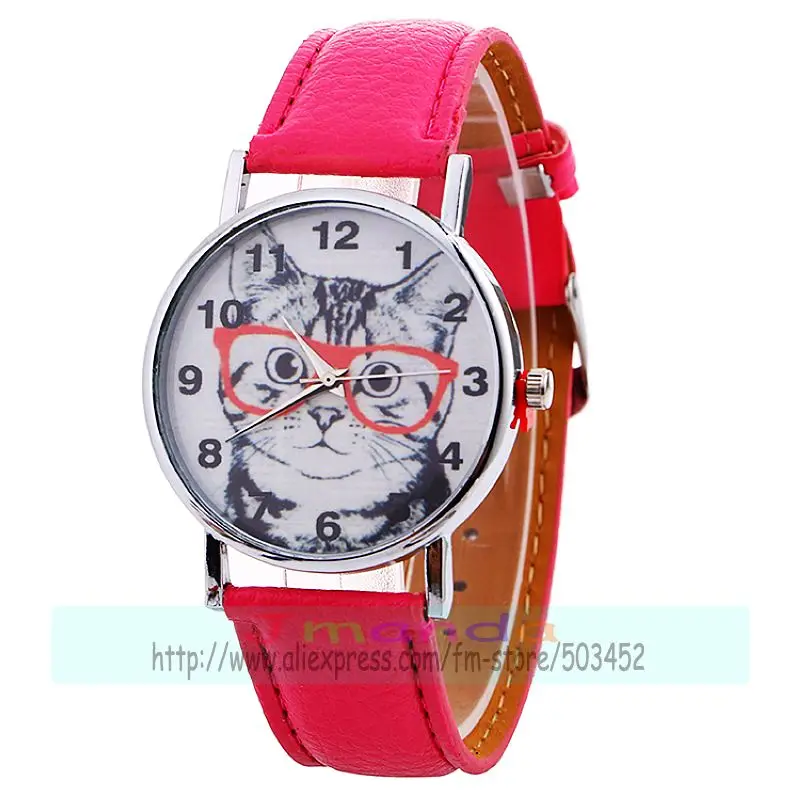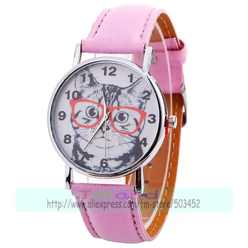 Отзывы о 100 шт./лот 918766 часы с милым котом оранжевые очки кожаные для женщин наручные