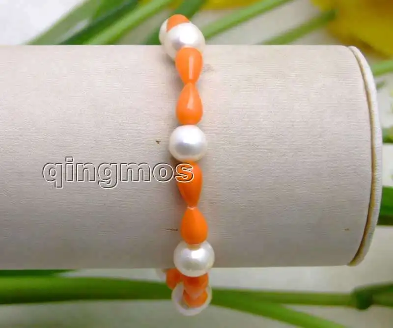 Распродажа красивая! 8-9 мм белый натуральный жемчуг и 5*9 мм оранжевый Коралл 7,5 "bracelet-bra295 (Если вы хотите купить больше, мы можем оптовая продажа для вас.) |