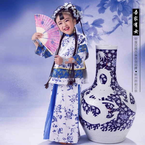 Купить Синий костюм из фарфора WuJiaYouNv для маленькой девочки в конце китайского республиканского периода Lass Xiuhefu on.