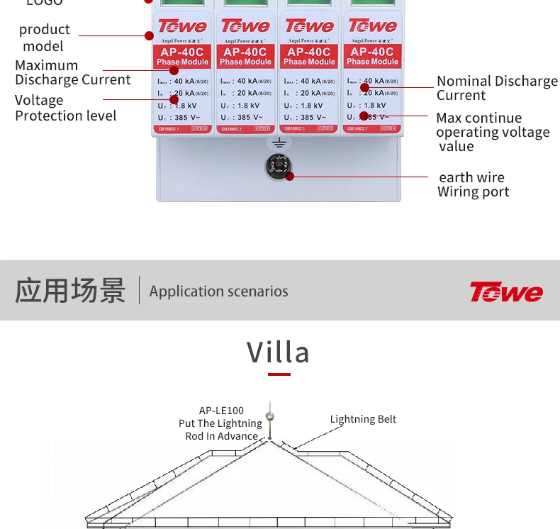 TOWE AP 40C 4P 40kA трехфазный устройство для защиты солнечной системы более Напряжение - купить
