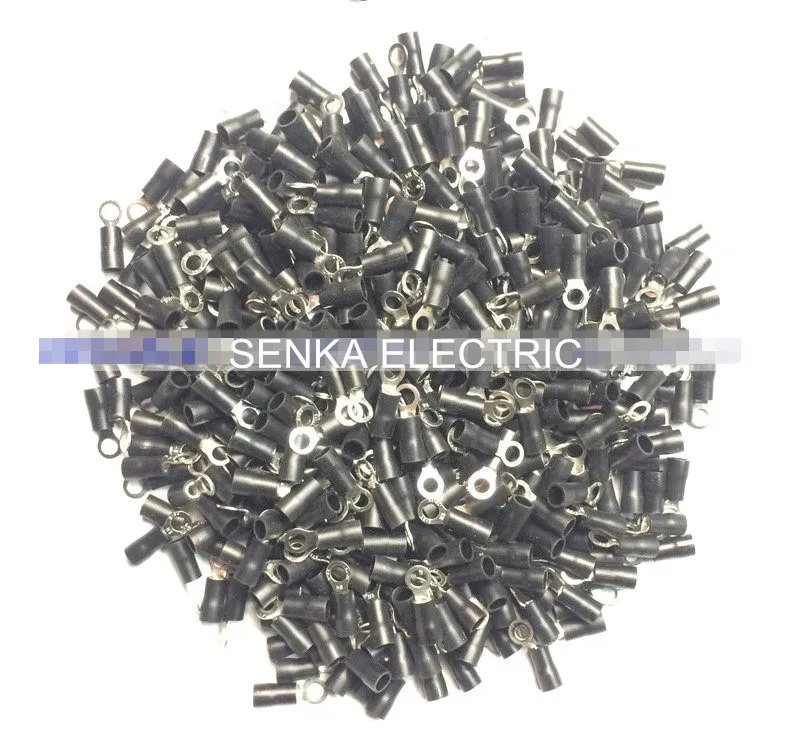 Отзывы о 500 шт RV3.5-4 #8 размер шпильки Черные виниловые изолированные кольцевые клеммы для