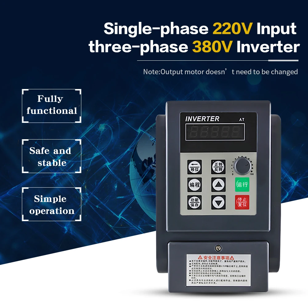 Инвертор 220 В до 380 В, преобразователь напряжения, 0.75 кВт/1.5 кВт/2.2 кВт/4 кВт/5.5 кВт/7,5 кВт однофазный трехфазный двигатель VDF governor