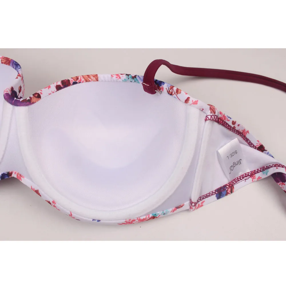 Женский купальник-бандо с цветочным принтом, пляжная одежда, купальник Maillot de bain, бикини пуш-ап, 2019