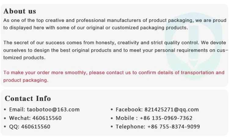 Зона обслуживания: Наши блистерные упаковочные продукты широко используются в области упаковки usb-кабеля, упаковки наушников, упаковки внешнего аккумулятора, упаковки чехлов для телефона, упаковки защитной пленки для экранаИ другие упаковочные материалы. |