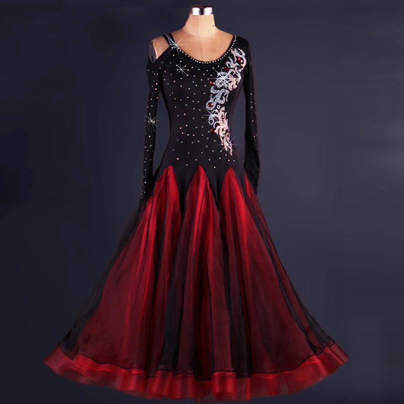 Женский костюм для бальных танцев спандекс с длинным рукавом черное платье - купить