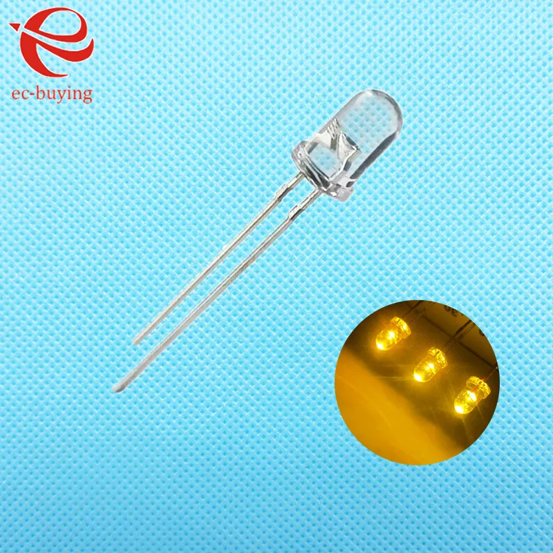 Жёлтый светодиод 3 мм Круглый светоизлучающий диод прозрачная ультра-яркая лампа - купить