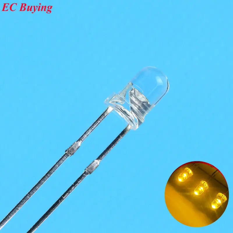3 мм желтый светодиод Круглый светоизлучающий диод Прозрачный Ультра яркий шарик плагин DIY набор практика широкий угол 3 мм