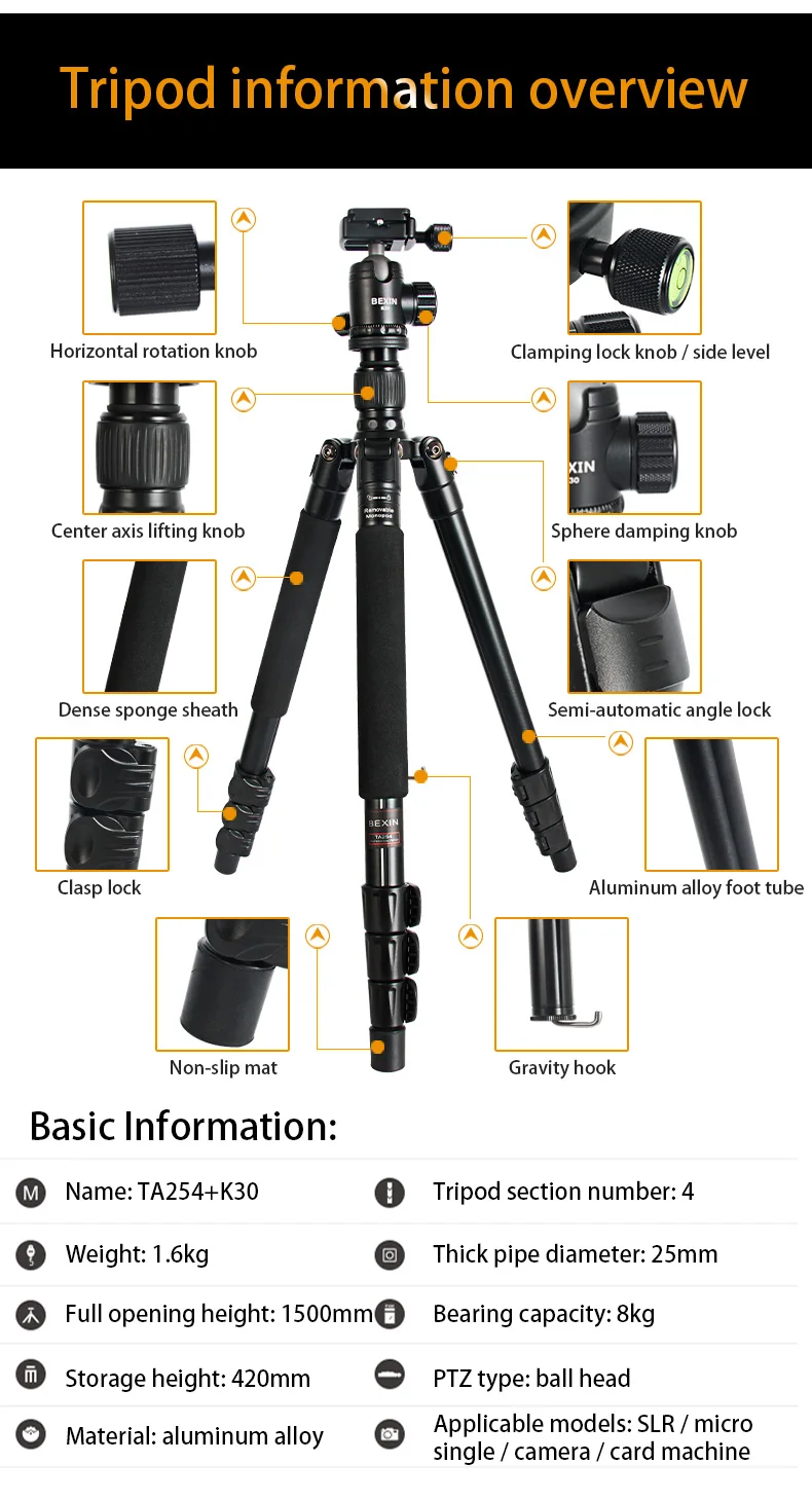 Отзывы о Штатив для фотокамеры алюминиевый складной портативный Трипод цифровой