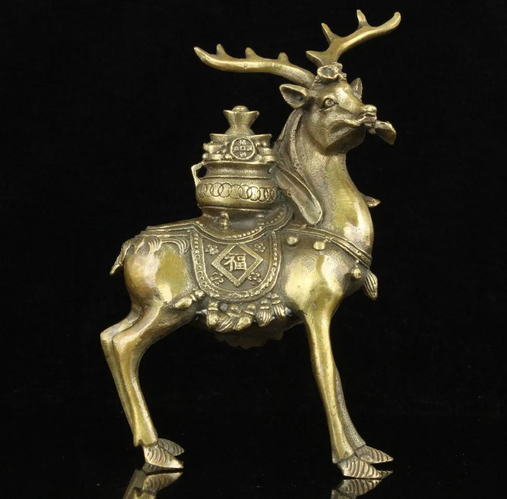 Купить zhmui88002841033++China Collectible Old Handwork Bronze Sculpture Plutus Sika Deer Statue | Statues & Sculptures