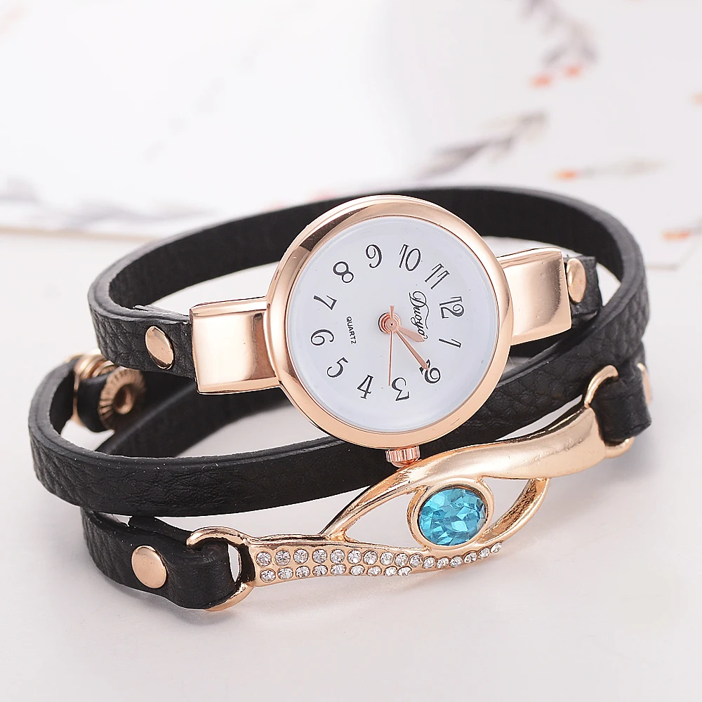 Duoya Бренд Часы Женские Роскошный Золотой Глаз Драгоценный Камень Браслет Кожаный - купить