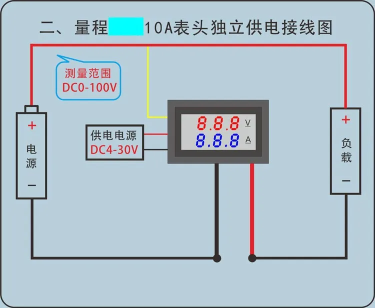 Особенности:100% новый бренд.Размер: 48 мм x 29 мм x 21 мм.Цвет дисплея: красный и синий светодиодный (двойной дисплей).Дисплей: 0,28 "светодиодный цифровой.Рабочее напряжение: DC 4,5 ~ 30V.Измеренное напряжение: постоянный ток 0 ~ 100 В.Минимальное разрешение (В): 0,1 в.Частота обновления: ≥ 500 мс/раз.Точность измерения: 1% (± 1 цифра).Минимальное разрешение (A): 0.01A.Рабочий ток: <20 мА.Измерительный ток: 10A (прямое измерение, Встроенный шунт).Рабочая температура: от-10 до 65 °C.Рабочая влажность: от 10 до 80% (без конденсации).Монтажный вырез: 45,5 мм x 26,5 мм.Посылка:1 амперметр постоянного тока 0-100 в