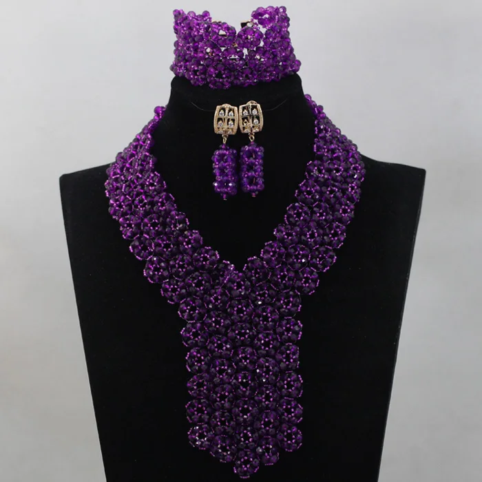 Новинка, фиолетовый цвет, африканские бусы, ювелирный набор, женский набор, ожерелье, ручной работы, бисер, кристалл, ювелирный набор, бесплатная доставка