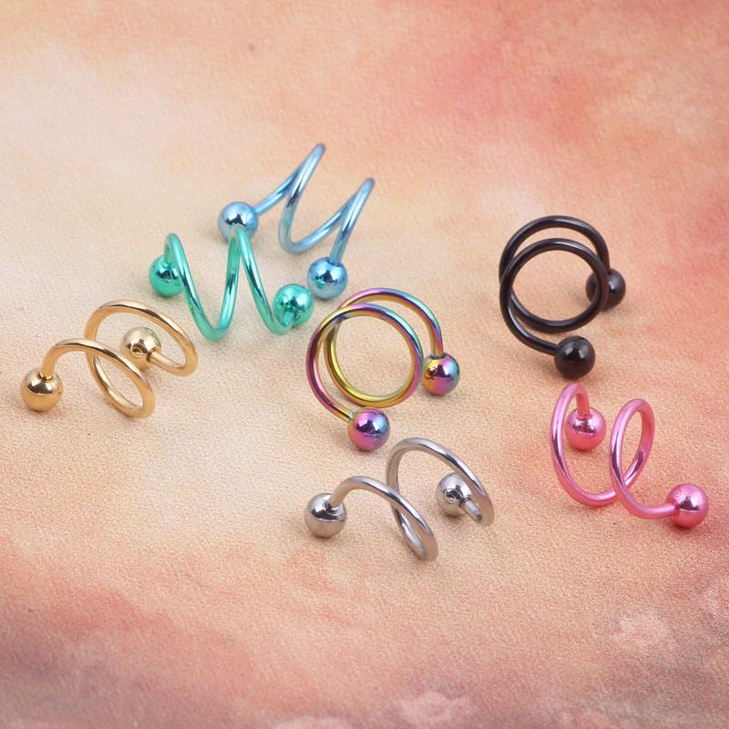 Отзывы о Лот 70 шт 16 г ~ 1 2 мм двойной Твистер для губ уха хрящ трагус спираль кольцо бровей