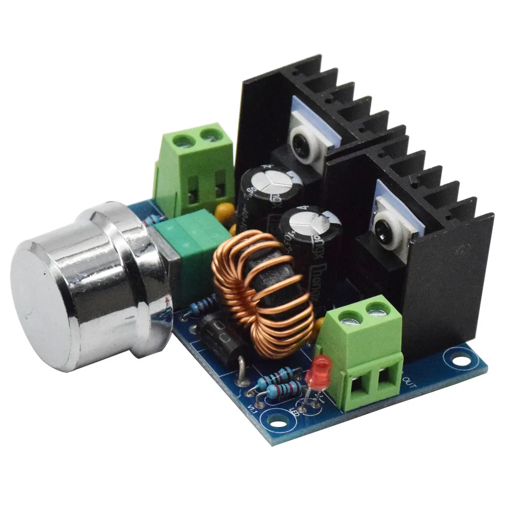 Этот продукт использует XL4016 коммутации surge чип, сотрудничать MBR10200 двойной выпрямителя, Максимальная Входная может быть до 40 В, выход 1,25-36 В плавной регулировкой Параметры продукта: Название продукта: регулятор напряжения постоянного тока Режим регулировки: Модуляция PWM Вход напряжение: DC4-40V Выходной диапазон: DC1.25-36 v Максимальный ток: 8A Максимальная мощность 200 Вт Эффективность преобразования: 94% Частота переключения: 180 кГц Размер внешнего вида: 61*41*27 мм Вес изделия: 51 г Максимальный выходной ток до 8А. При использовании вентилятора необходимо добавить к длительной работе, рекомендованной в 5А!