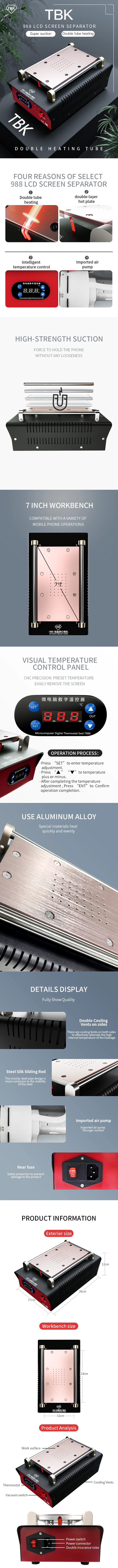 TBK-988 новейший Черный 7-дюймовый ЖК-разделитель со встроенным вакуумным насосом - купить