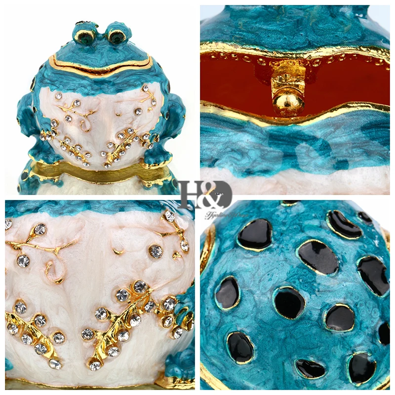 Название продукта: H & D 2,1 'откидная Синяя Лягушка безделушка коробка для свадебных ювелирных изделий Кольцо держатель, расписанные вручную милые животные коллекционные для Рождественский подарок