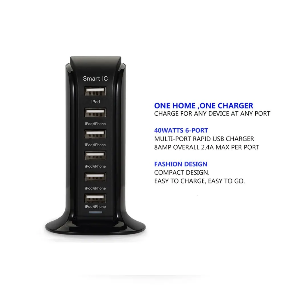 1 х 6А 30 Вт 6 портов USB зарядное устройство