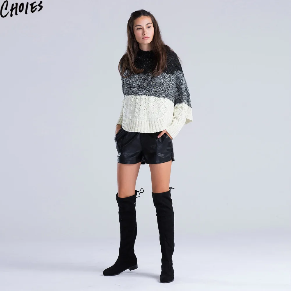 Для женщин свитер кабель трикотажные Colorblock накидка пончо негабаритных летучая - купить