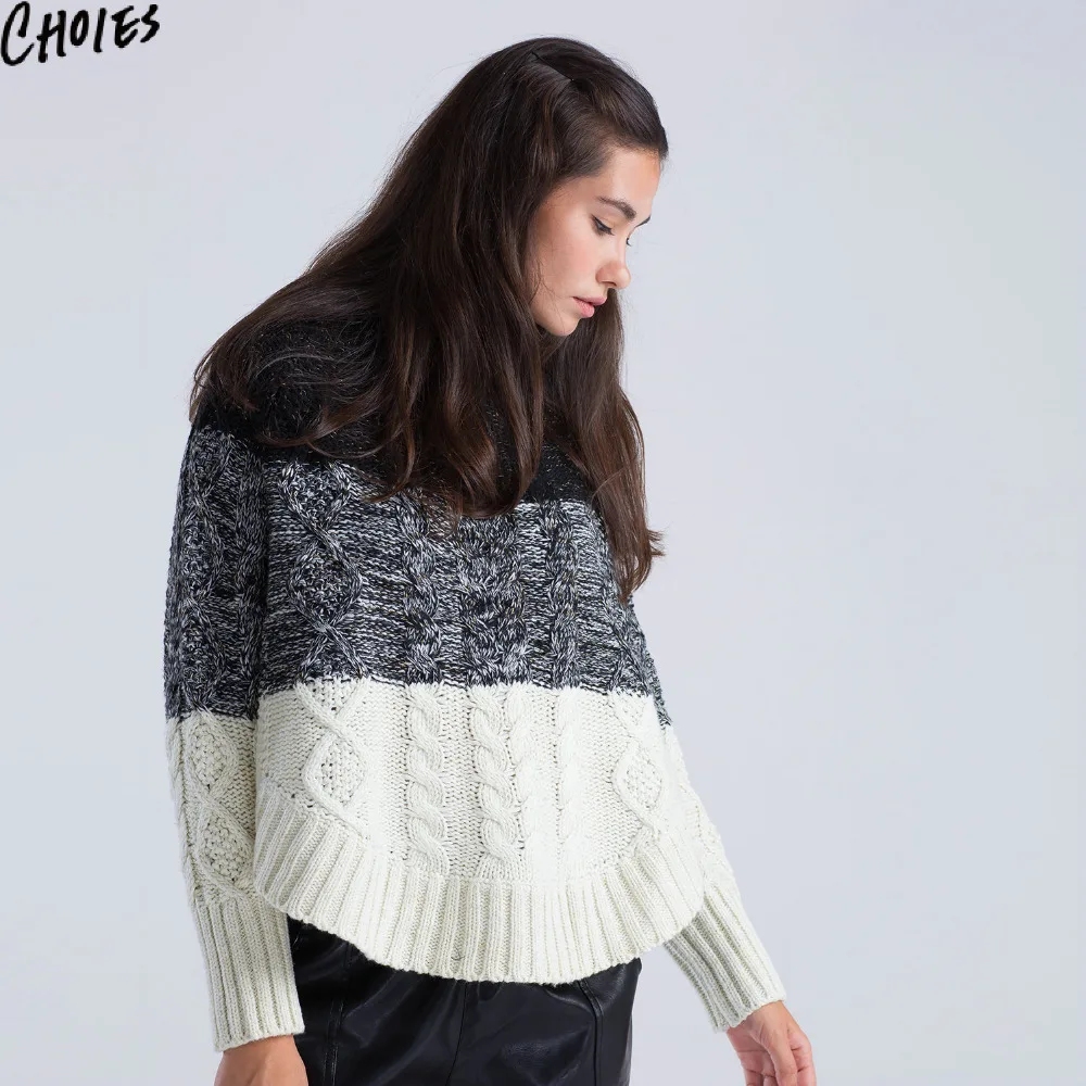 Отзывы о Для женщин свитер кабель трикотажные Colorblock накидка пончо негабаритных летучая
