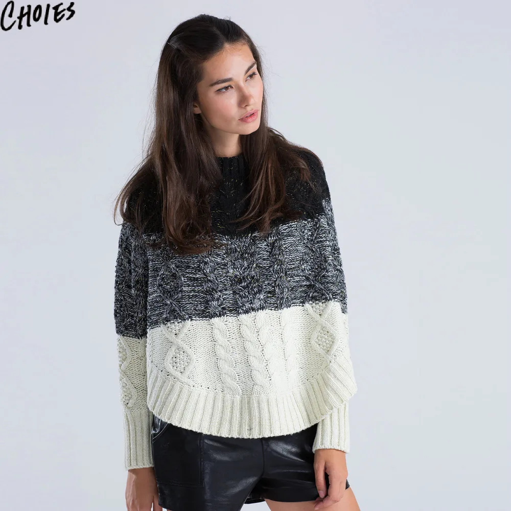 Купить Для женщин свитер кабель трикотажные Colorblock накидка пончо негабаритных летучая
