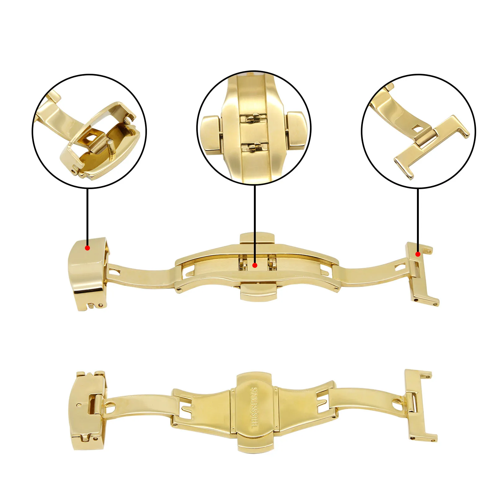 Застежка-бабочка, двойная кнопка, пряжка, Ремешки для наручных часов, нержавеющая сталь, пряжки, черный, золотой, серебристый, розовое золото, Relogio Masculino K09