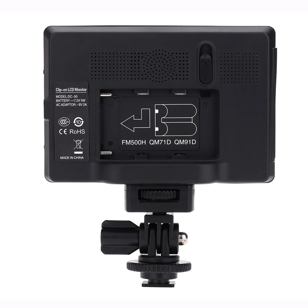 ЖК-монитор Viltrox DC-50 с зажимом помогает любителям фото и видеооператорам снимать видео высокого качества HD.Существует также пиксельное увеличение и Пикачу, которые обеспечат точное подтверждение фокусировки.Широкоугольный ЖК-экран.DC-50 имеет два разъема, совместимых с HDMI, и один av-разъем для получения видеосигнала от камеры; Разъем затвора успешно контролирует съемку, когда DC-50 epitaxial ЖК-дисплей камеры.Со стандартным адаптером для обуви с регулировкой на один уголПодвижный адаптер для обуви позволяет легко снимать при использовании камеры с автоматической блокировкой.Работает с перезаряжаемой батареей NP-FM500H (не входит в комплект) или адаптером питания.С складной солнцезащитным щитом и сумкой для переноски.