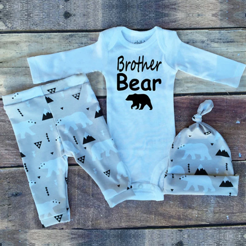 младенческая Одежда Набор Костюм Младенца 2016 Осень детская Одежда Набор Детская Одежда Мультфильм Медведь Новорожденного Ребенка Ползунки + Брюки + шляпа 3 Шт.