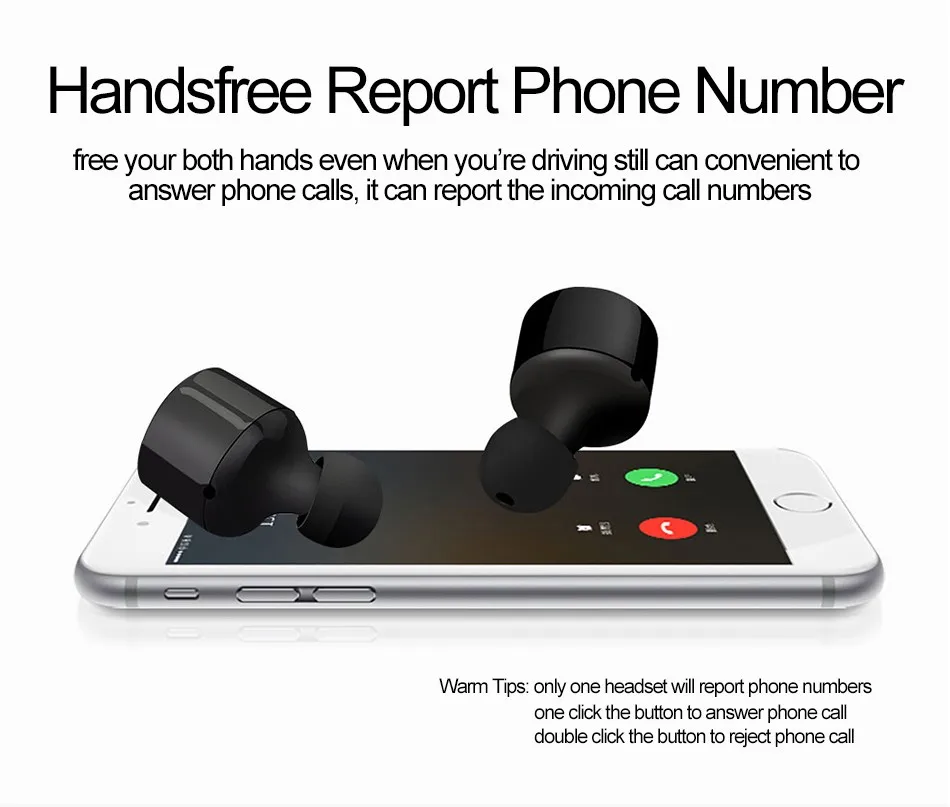 Основные функции: 1). Bluetooth 4,1 CSR чипсет, мощное аудио декодирование, высокая точность объемного стерео и супер бас звук выход, гарнитуры совместимы с большинством устройств с поддержкой bluetooth, таких как смартфон, планшетный ПК, smart tv, ноутбук и т. д. 2). Бинауральная конструкция, вы можете использовать гарнитуру отдельно или использовать их вместе, чтобы получить лучший музыкальный опыт. 3). Встроенный чувствительный микрофон с шумоподавлением, поддержка громкой связи для ответа на входящие телефонные звонки, кроме того, гарнитура сообщит о входящих телефонных звонках, что делает его более удобным в использовании. 4). Оптимизированы для дополнительного комфорта и лучше сидят в наушниках, облегчают проблему выскакивания, мягкий материал для защиты ушей. 5). Поддержка подключения к двум смартфонам, вы можете поделиться музыкой с вашими влюбленными, друзьями... 6). Умное самочувствие для продления срока службы батареи. Гарнитура настроит себя на состояние спящего режима, когда она не работает более 10 минут, чтобы сохранить питание и продлить срок службы батареи. 7). Супер Мини Размер и ультра легкий корпус, это всего 6 г.