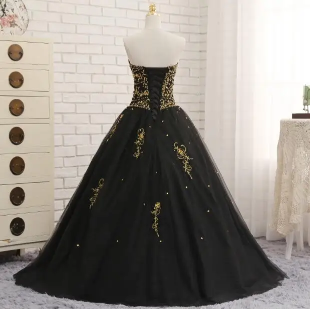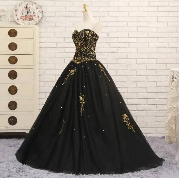 Черные платья для девушек тюлевые с золотой вышивкой из бисера милые 16 Пышное - купить