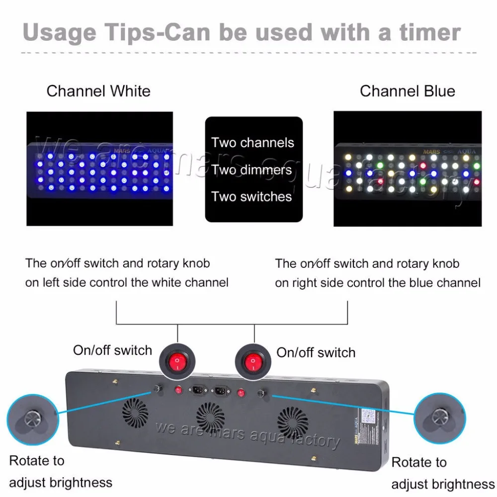 Поверните поворотная ручка, можно будет отрегулировать длину светильник интенсивности в вашем аквариуме, имитирующие окружающей среды, таких как закат, восход, днем и ночью, и т. д.