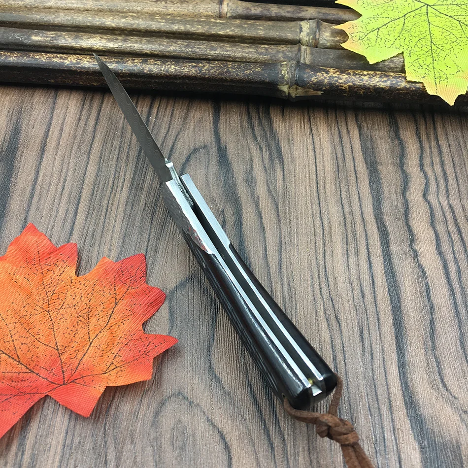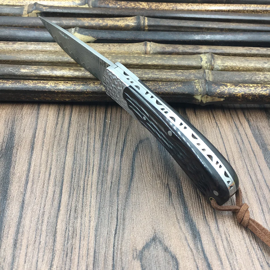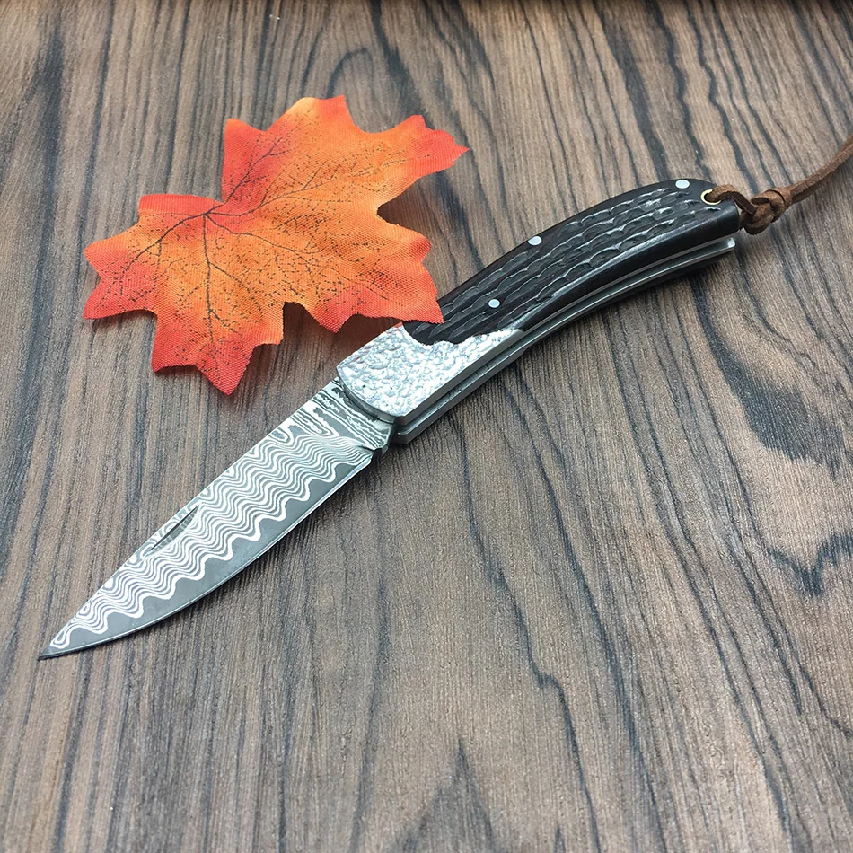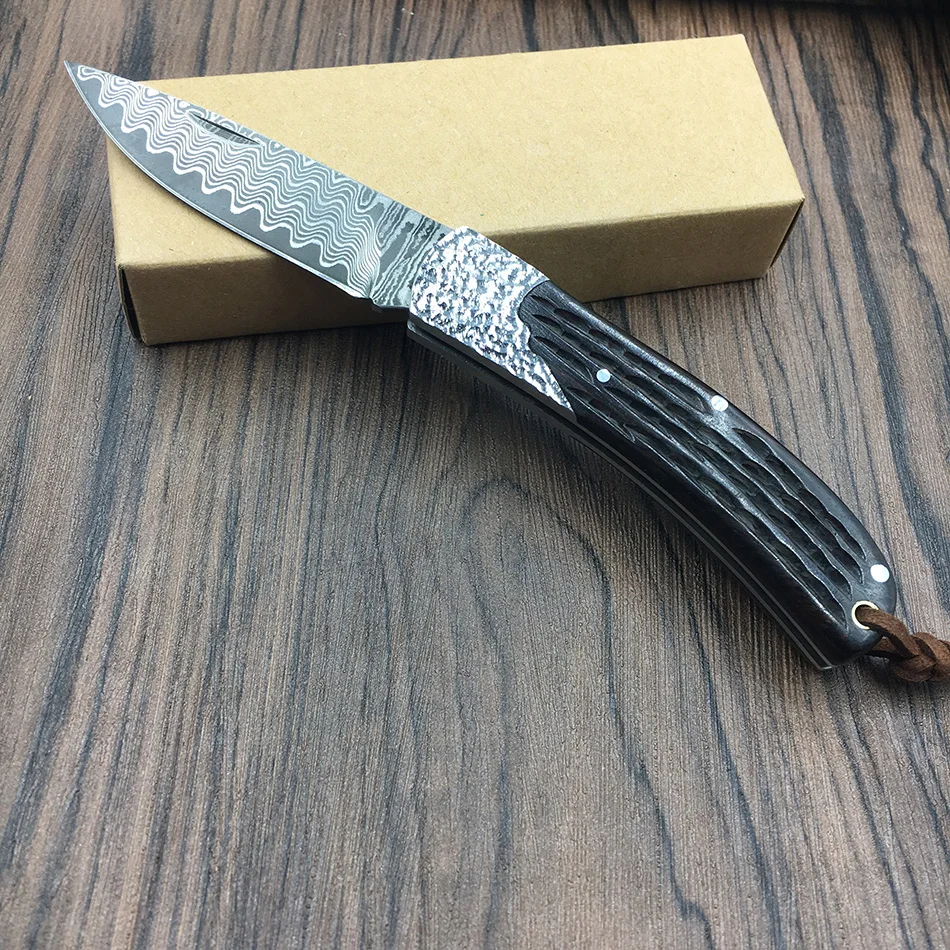 Отзывы о Складной нож ручной работы из дамасской стали 59HRC черного дерева портативный