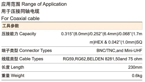 Отзывы о HS 02 H клещи для опрессовки 8 мм/6.4 мм/1.7 mmHXE & 1 mmSQ коаксиальный кабель